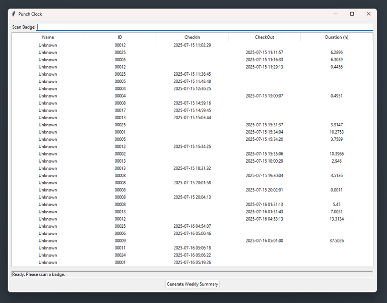 This custom time clock was built for the realities of temporary and seasonal staffing. Employees simply scan in and out, and the system automatically compiles accurate weekly reports of hours worked — no spreadsheets, no manual tallying. With its lightweight design, it can run on nearly any device and be set up in minutes. By combining fast, reliable data capture with built-in reporting, it keeps payroll accurate, managers informed, and operations running smoothly.